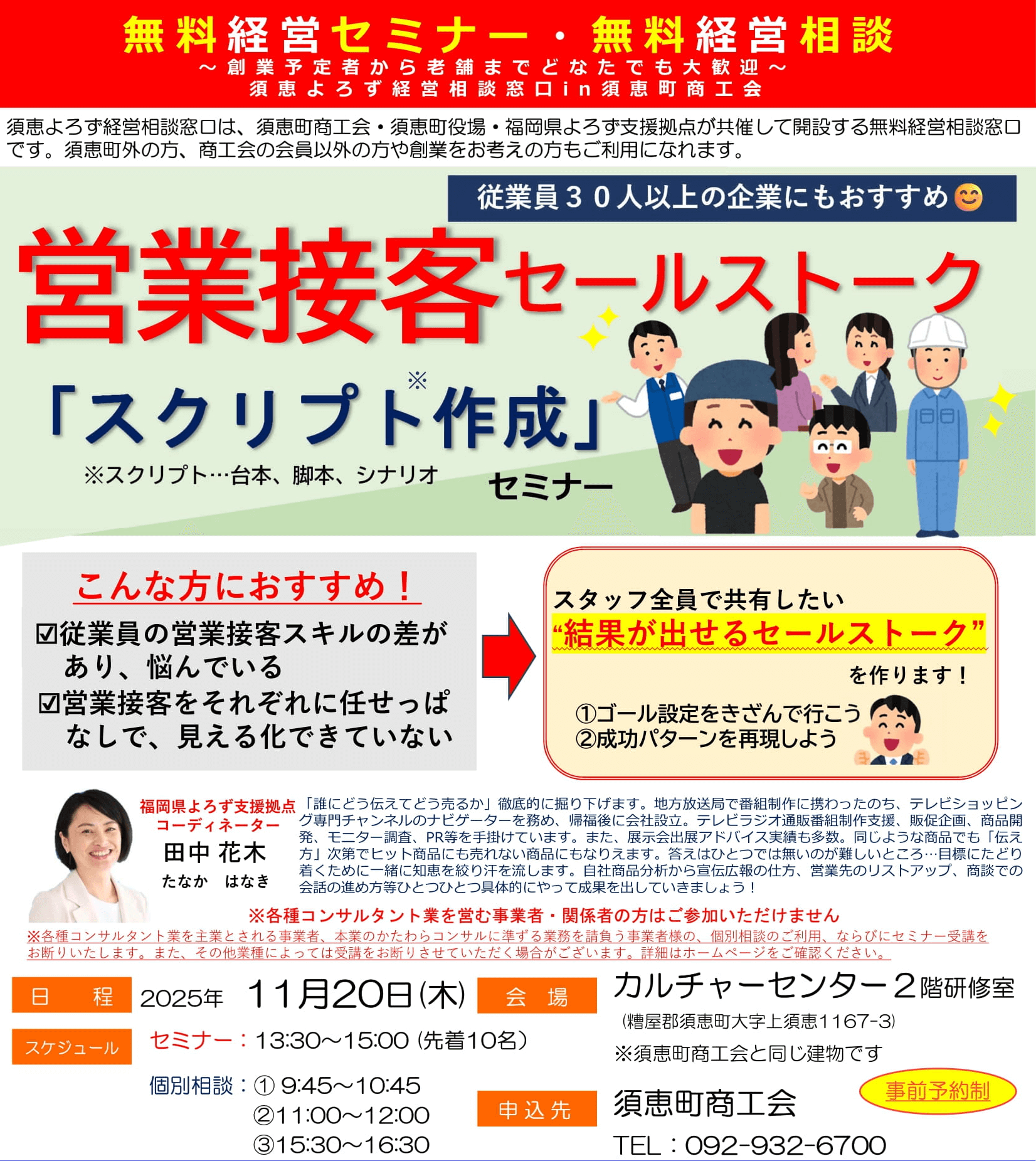 2025年11月20日(木)13:30~15:00(会場:須恵町カルチャーセンター 2階研修室 【申込先】須恵町商工会(TEL:092-932-6700))